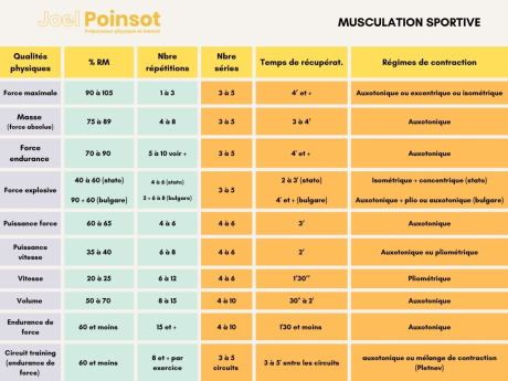 Dans chaque ligne du tableau, vous trouverez les conseils pour développer les différentes qualités physiques sportives.